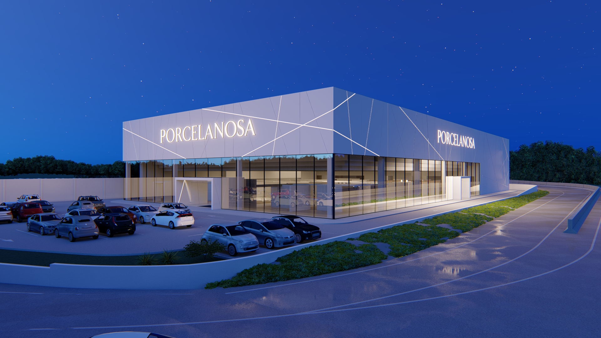 El proyecto tiene como objetivo la búsqueda de la mayor visibilidad posible del producto, rebajando la cota del edificio para acercarse más a la del vial próximo rodado.